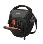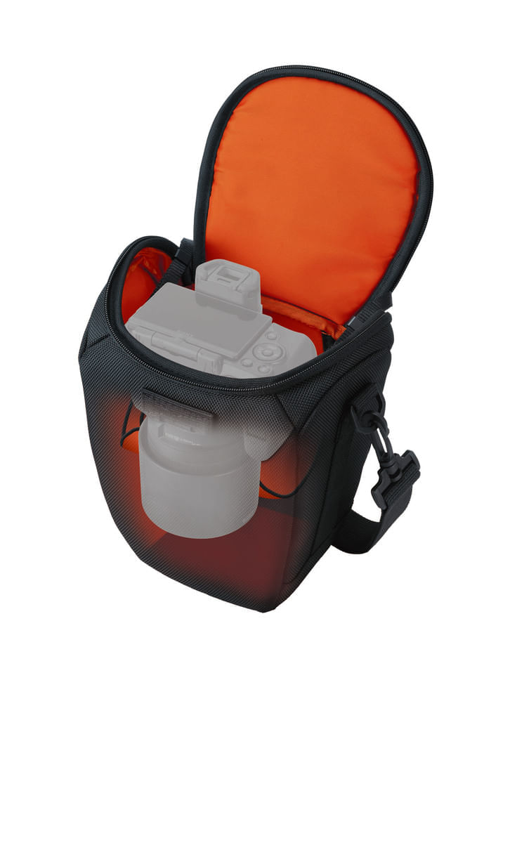 Funda de transporte blanda, ideal para viajar y fotografías de uso general Protege el cuerpo de la cámara y la lente de zoom estándar montada del polvo, las salpicaduras y los golpes cotidianos Tres maneras de llevarla: asa, correa para el hombro y pasador para cinturón Acabado en poliéster negro resistente Bolsillo para batería/soporte Bolsillo para tapa de lente No es compatible con la batería de la serie M Dimensiones aproximadas (mm): 190 (An.) x 220 (Al.) x 160 (Pr.) Peso aproximado: 330 g (incluida la correa)