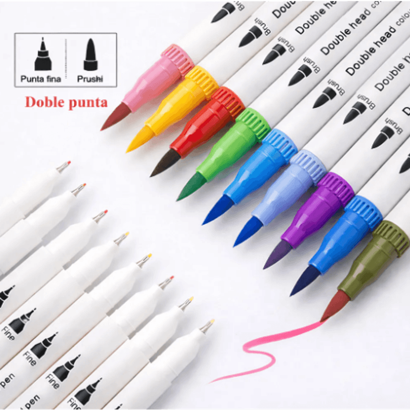 Amplio y variado kit de marcadores de doble punta para resolver cualquier necesidad y/o tarea. Además de su amplia variedad de colores aumenta su versatilidad con su doble punta. Colorea, dibuja, diseña, lleva al papel cualquier cosa que tu imaginación conciba.