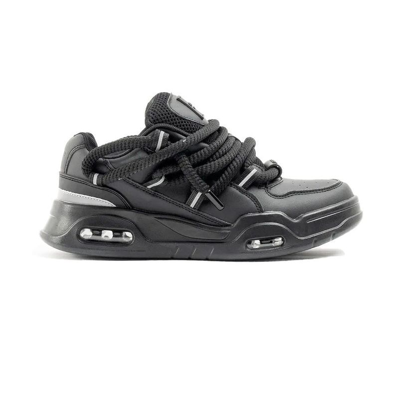 Zapatillas de símil cuero (PU) con recortes. Base con cámara de aire. Contiene cordones gruesos redondeados. Con lengüeta rellena e interior con tejido respirable. Viene con un par de cordones extra para intercambiar.