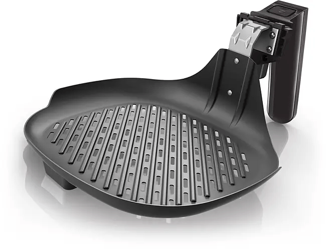 Prepare pescados, carne y vegetales perfectamente dorados y saludables gracias a la tecnología Rapid Air, combinada con una exclusiva superficie perforada con salientes. Gracias a su superficie antiadherente, la comida se saca sin esfuerzo y también es muy fácil de limpiar