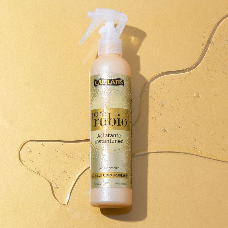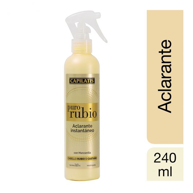 Vaporizar sobre la zona del cabello que se desea aclarar. Peinar y secar al sol o con secador. Dejar actuar de 10 a 20 minutos y lavar el cabello con Shampoo Iluminador Puro Rubio de Capilatis®. Aclara gradualmente el cabello y de forma permanente; si la decoloración no fue suficiente se puede repetir el proceso. Puede utilizarse también para retocar raíces de crecimiento o para disimular el vello de brazos y piernas. No recomendado para cabellos tratados con coloración, permanentes o alisados. No contiene tintes metálicos. Se recomienda no aplicar más de una vez por semana.