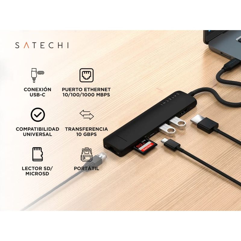 El diseño delgado y elegante del adaptador lo hace fácil de llevar a donde sea. Entra perfectamente en tu cartera, mochila o bolsillo sin añadir volumen. Su acabado negro complementa cualquier dispositivo, aportando un toque de sofisticación y utilidad.