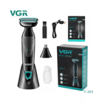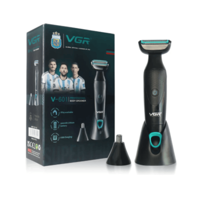 La VGR V-601 es una máquina de corte de pelo recargable y ajustable. Está hecha de acero inoxidable y tiene una cabeza de afeitar recíproca. La batería dura más de 90 minutos y se carga en 1,5 horas. La fuente de alimentación es USB y tiene una potencia máxima de 8W. La VGR V-601 también es una afeitadora eléctrica 2 en 1 para la nariz y el cuerpo. Es recargable, resistente a salpicaduras y funciona en seco y húmedo.