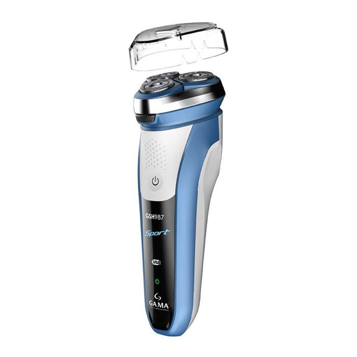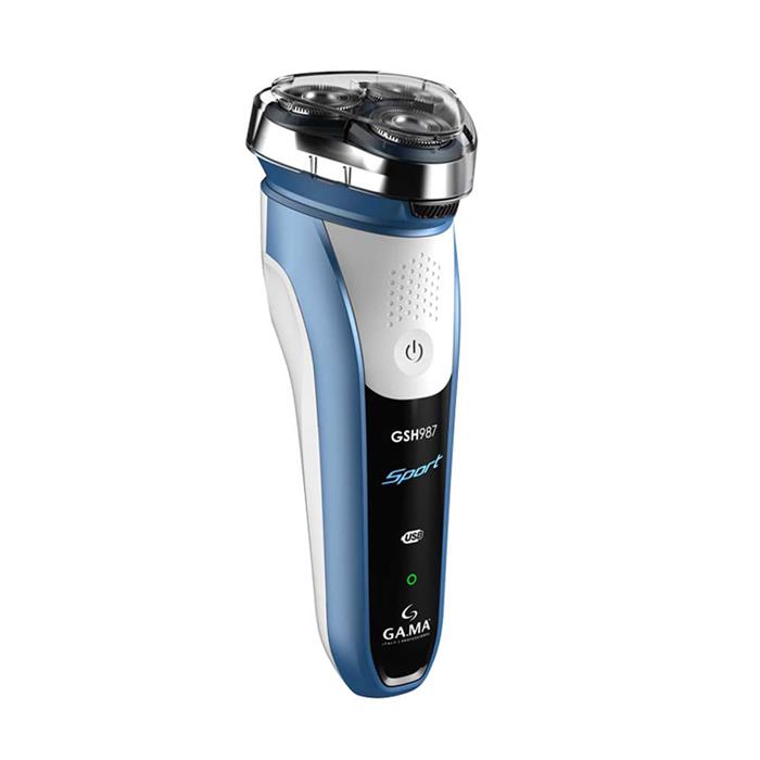 La AFEITADORA GSH987 SPORT USB se caracteriza por su corte de precisión ideal para el afeitado en seco y húmedo. Contiene cabezales con dos cuchillas rotativas y flotantes y un cortapatillas desplegable perfecto para recortar el bigote y patillas.