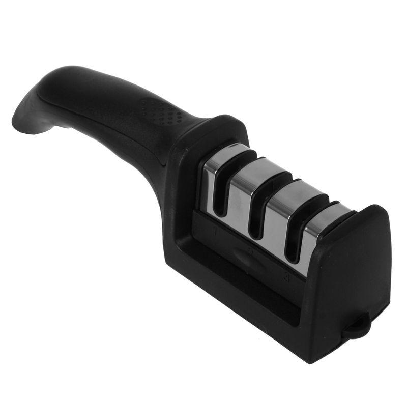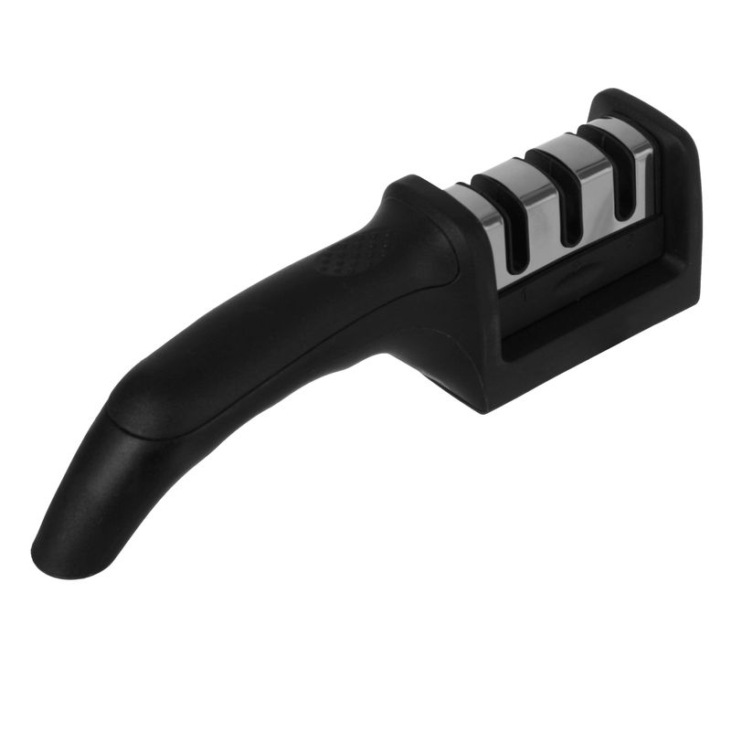 Mantén tus cuchillos siempre afilados con precisión. Este afilador profesional de 3 etapas ofrece un afilado completo: desbaste, afilado y pulido, logrando un filo perfecto en segundos. Su mango ergonómico y base antideslizante garantizan seguridad y comodidad durante el uso. Ideal para cuchillos de cocina, acero inoxidable y más.