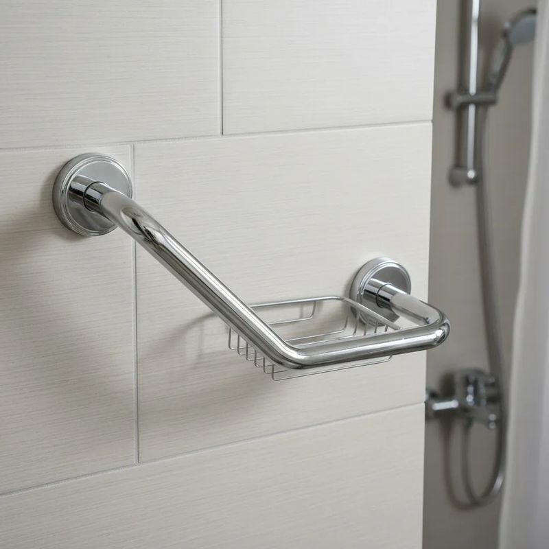 RenovaciónBañosAccesorios y complementosAgarradera Seguridad Angular Inoxidable Con Jabonera Baño Plateado