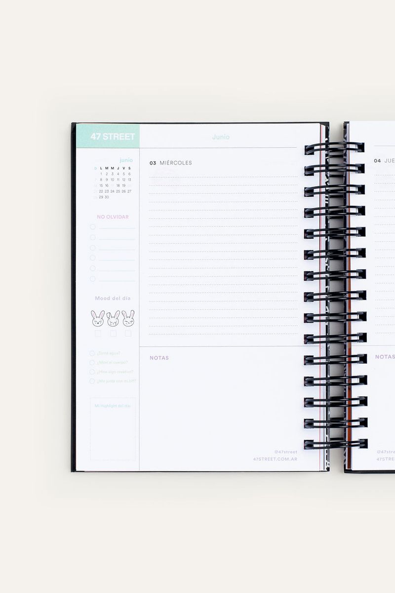 • Hojas lisas para tus notas, tracker de hábitos, planner mensual, trackers diarios y un espacio de reflexión.
