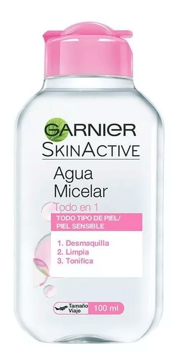 Agua Micelar Todo en 1 versión travel size, de 100ml para que la lleves a donde quieras. Limpia, desmaquilla y tonifica en un solo gesto rostro, ojos y labios.