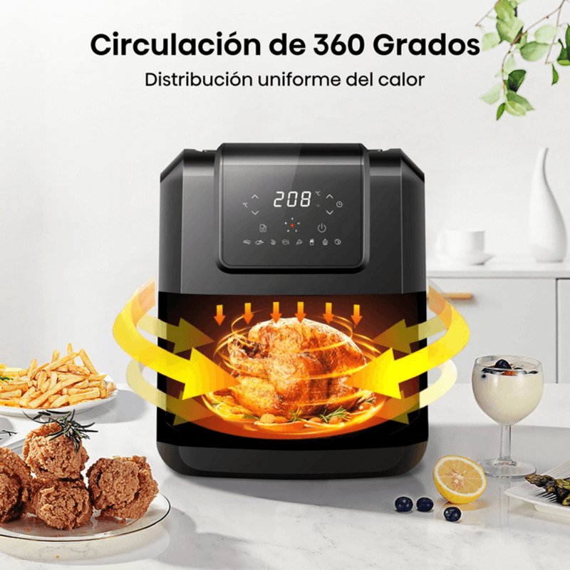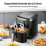 Con una capacidad de 6.3 litros, esta Air Fryer es perfecta para preparar comidas para toda la familia. Su diseño cuadrado maximiza el área de cocción, permitiéndote cocinar más alimentos en una sola sesión y ahorrando tiempo en la cocina.