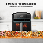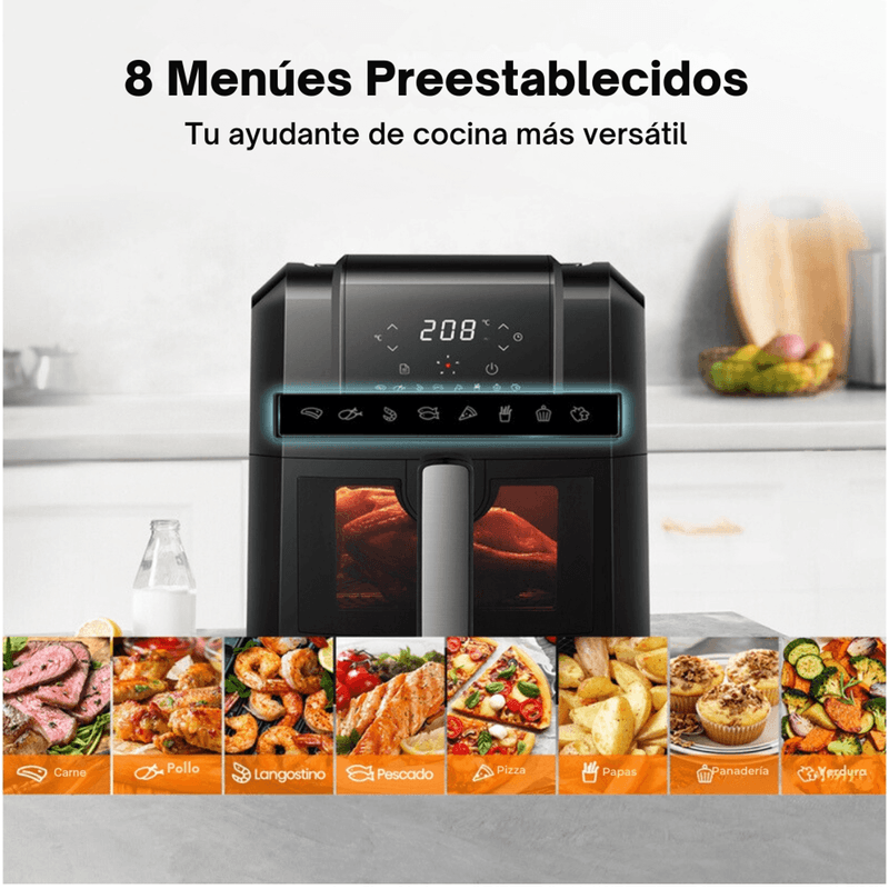 Con 8 programas preestablecidos, esta Air Fryer te ayuda a obtener los mejores resultados para cada tipo de comida, desde papas fritas hasta pollo asado o postres. Además, los ajustes manuales de tiempo y temperatura te permiten explorar tu creatividad en la cocina.