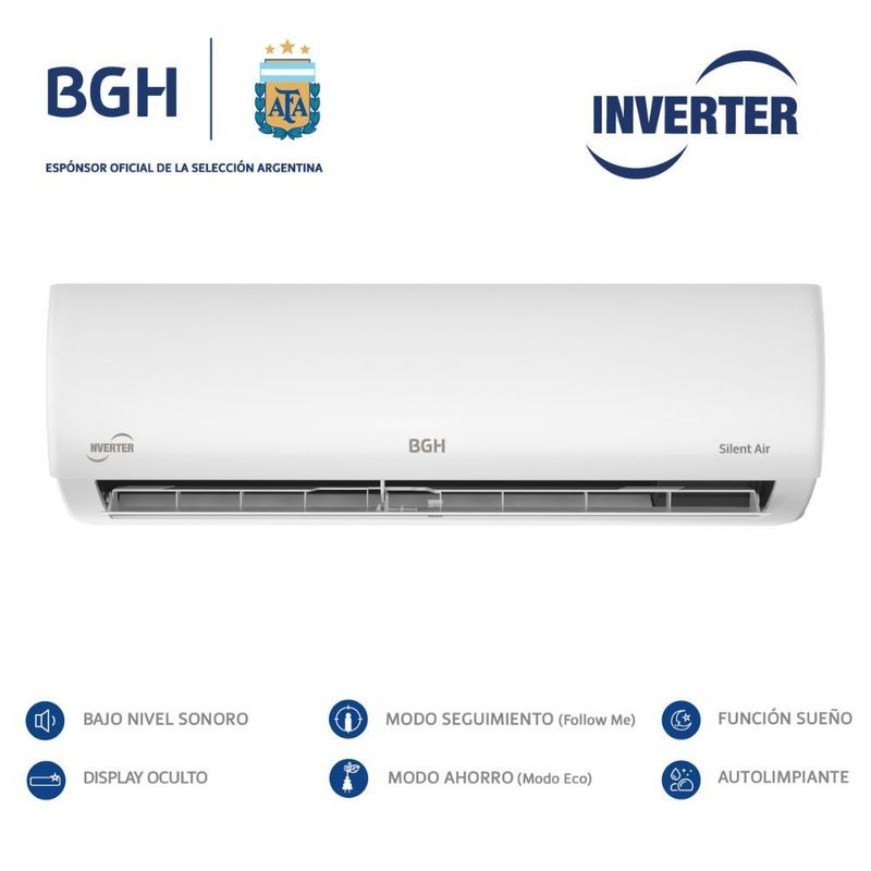 » Tecnología Inverter: El BGH Silent Air Inverter BSI52WCLW es la solución ideal para climatizar tu hogar o espacio de trabajo con máxima eficiencia y rendimiento. Gracias a su tecnología Inverter, este equipo ajusta de forma inteligente la velocidad del compresor, garantizando un ahorro energético significativo, una temperatura estable sin cambios bruscos y un funcionamiento más silencioso.