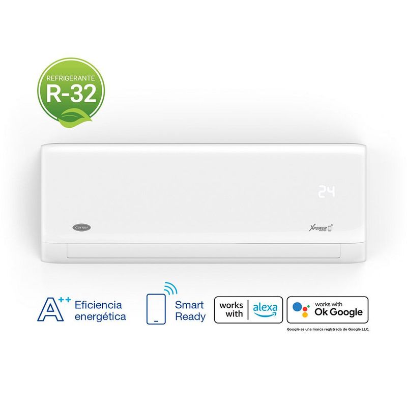 » Con tecnología Inverter: La tecnología Inverter regula la potencia del equipo, logrando un importante ahorro de energía. El aire acondicionado Carrier regula la potencia del compresor dependiendo de la temperatura del ambiente y la necesidad de frío o calor, brindando mayor confort, menor nivel de ruido y hasta un 35% menos de consumo de energía.