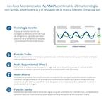 Aunque no incluye funciones avanzadas como temporizador o deshumidificación, su enfoque en ofrecer aire frío y ventilación hace de este aire acondicionado una opción confiable y funcional. Alaska se ha ganado una reputación sólida en el mercado por su calidad y durabilidad, garantizando que este modelo satisfaga tus necesidades de climatización sin complicaciones.