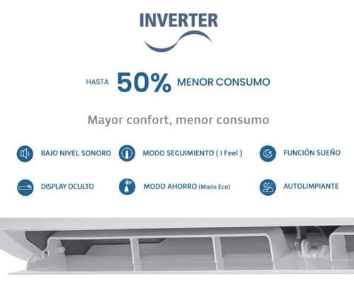 Este equipo no cuenta con tecnología inverter, lo que lo hace fácil de operar y mantener. A pesar de esto, su eficiencia energética clasificada como A en Argentina asegura un rendimiento eficaz que reducirá tus consumos eléctricos. Además, viene con un control remoto que facilita el manejo desde cualquier lugar de la habitación, brindando comodidad y practicidad.