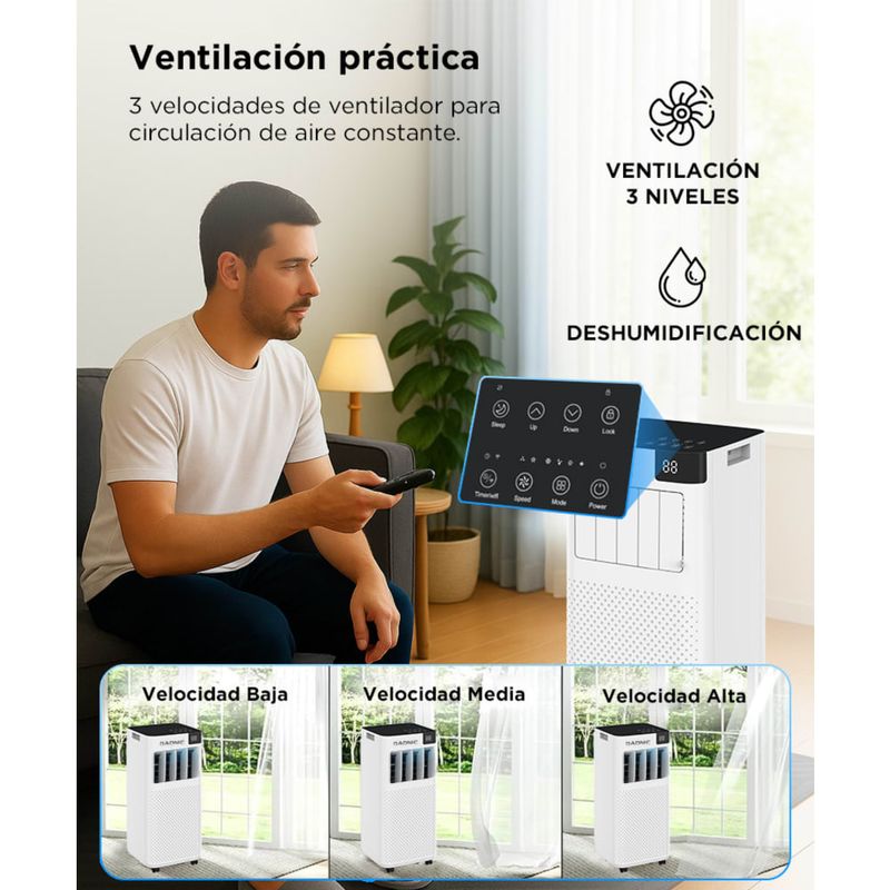 Climatización eficiente: Enfriá tus ambientes rápido con 9000 BTU de potencia, 2600 Watts y 2300 frigorías.