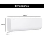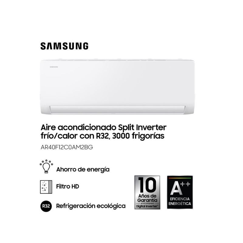» Diseño: El aire acondicionado Samsung presenta un formato tipo split que permite una instalación discreta y elegante dentro del ambiente. Su unidad interior se distingue por líneas limpias y un acabado moderno que se integra fácilmente con distintos estilos de decoración. Además, el tamaño y proporción del equipo están pensados para ocupar un espacio mínimo, optimizando tanto la estética como la funcionalidad.