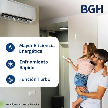 Climatización potente y eficiente todo el añoDisfrutá del confort ideal en cualquier estación con el Aire Acondicionado Split BGH BS52WCHU. Con una capacidad de 5200 watts y un rendimiento de 4470 frigorías, este equipo frío calor tipo On Off ofrece una climatización rápida, pareja y confiable. Es la solución perfecta para mantener la temperatura justa en tu hogar los 365 días del año.Ahorro energético sin resignar confortGracias a su eficiencia energética clase A en modo frío y calor, este aire acondicionado permite un consumo optimizado sin afectar el rendimiento. Con un coeficiente de eficiencia de 3.62, cuidás tu economía y contribuís al uso responsable de la energía, disfrutando del ambiente ideal sin sorpresas en tu factura de luz.Funciones inteligentes para tu comodidadIncluye múltiples funciones pensadas para hacer tu día más fácil: control remoto, filtro antipolvo que mejora la calidad del aire, función Sleep para un descanso reparador, modo Turbo que enfría o calienta en segundos, deshumidificación, ventilación, modo Mute, bloqueo para niños, Timer programable y Hot Start para evitar el aire frío al iniciar la calefacción.Diseño moderno con respaldo de calidadCon un diseño compacto y elegante, se adapta fácilmente a cualquier ambiente del hogar. Su funcionamiento es silencioso, con un nivel sonoro de solo 56 decibeles. Utiliza gas refrigerante ecológico R410A, que no daña el medioambiente. Respaldado por la calidad de BGH, este equipo ofrece tecnología confiable y una excelente relación entre potencia, eficiencia y confort.