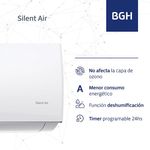 Los aires acondicionados BGH silent air combinan la última tecnología con la más alta eficiencia y el respaldo de la marca líder en climatización, cuenta con mayor eficiencia energética A en frio y calor, enfriamiento rápido, bajo nivel de sonoro, display oculto, modo seguimiento, autolimipante ,tu sueño y función sueño.Reducción de HumedadEl deshumidificador absorve el agua del aire y disminuye la molesta humedad, creando un ambiente confortable y de calidad.Programá de acuerdo a tus NecesidadesCuando las personas descansan su temperatura corporal baja gradualmente. Por eso, este aire cuenta con la función sleep, que hace que la temperatura del ambiente aumente a medida que pasa el tiempo. No tendrás que levantarte a apagarlo y podrás disfrutar de un sueño placentero.Potencia El split frío/calor BGH, con 2752 frigorías y 3200 watts de potencia, es ideal para ambientes de aproximadamente 30 metros cuadrados. Sin embargo, estos valores son estimativos y pueden variar según las específicas de cada ambiente. Para una selección más precisa, se recomienda considerar factores como la orientación, cantidad de personas, ventanas y aparatos eléctricos.