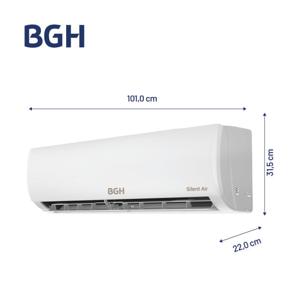 Unidad interior (Ancho x Profundidad x Alto): 101 × 31,5 × 22 cm, con un nivel sonoro desde 46 dB, ideal para mantener un ambiente tranquilo.