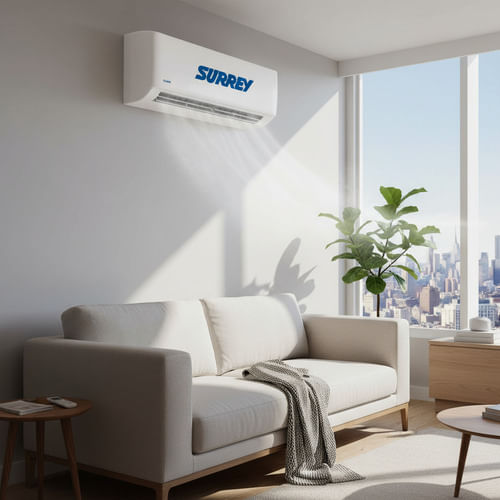 El aire acondicionado Split Surrey 553NFQ22GN81F es la opción ideal para climatizar ambientes amplios con eficiencia y tecnología. Con una capacidad de 5822 kcal/h (frío) y 5865 kcal/h (calor), ofrece excelente rendimiento tanto en verano como en invierno.
