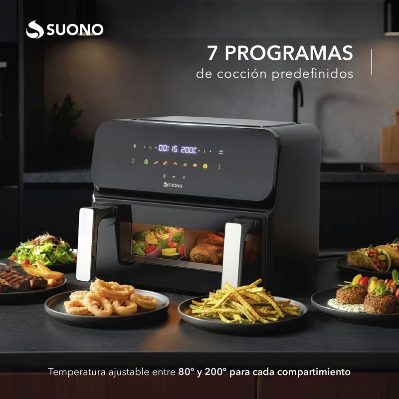 -Controles independientes: Configuración individual de temperatura y tiempo para cada compartimiento.