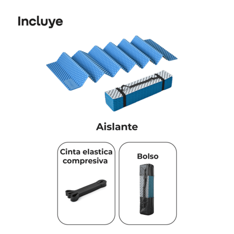 Sumá comodidad, abrigo y durabilidad a tus salidas de camping con este aislante térmico plegable de IXPE técnico con recubrimiento real de aluminio, una opción claramente superior a las colchonetas de goma EVA comunes: su espuma de polietileno reticulado ofrece mejor soporte corporal, menor hundimiento en espalda y cadera y una aislación térmica estable incluso con uso intensivo, mientras que el aluminio refleja el calor corporal de forma efectiva (no es pintura); con medidas de 200 × 65 × 1,3 cm, peso liviano de solo 440 g y diseño plegable tipo acordeón, es impermeable, resistente, fácil de limpiar y muy práctico de transportar gracias a su bolso y correa incluidos, ideal para camping, trekking, montañismo, carpas, refugios o como colchón portátil para quienes buscan confort real, alta durabilidad y cero riesgo de pinchaduras.