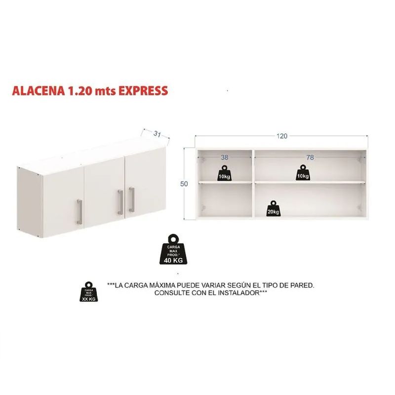 Alacena Mod. Express Mosconi 1.20 Mts – Elegancia y Funcionalidad para tu Cocina