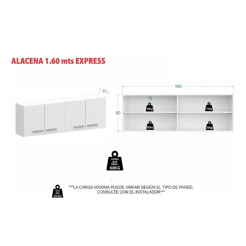 Alacena Mod. Express Mosconi 1.60 Mts: Elegancia y funcionalidad para tu cocina