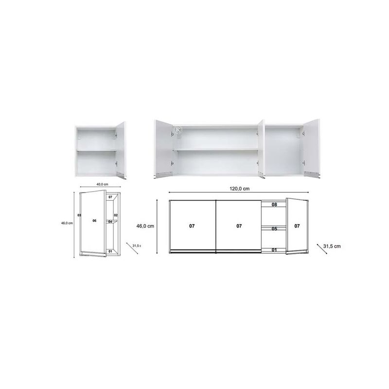 ALACENA ARCO 160 CM RICCHEZZE BLANCO ALUMINIO (120 + 40 CM)