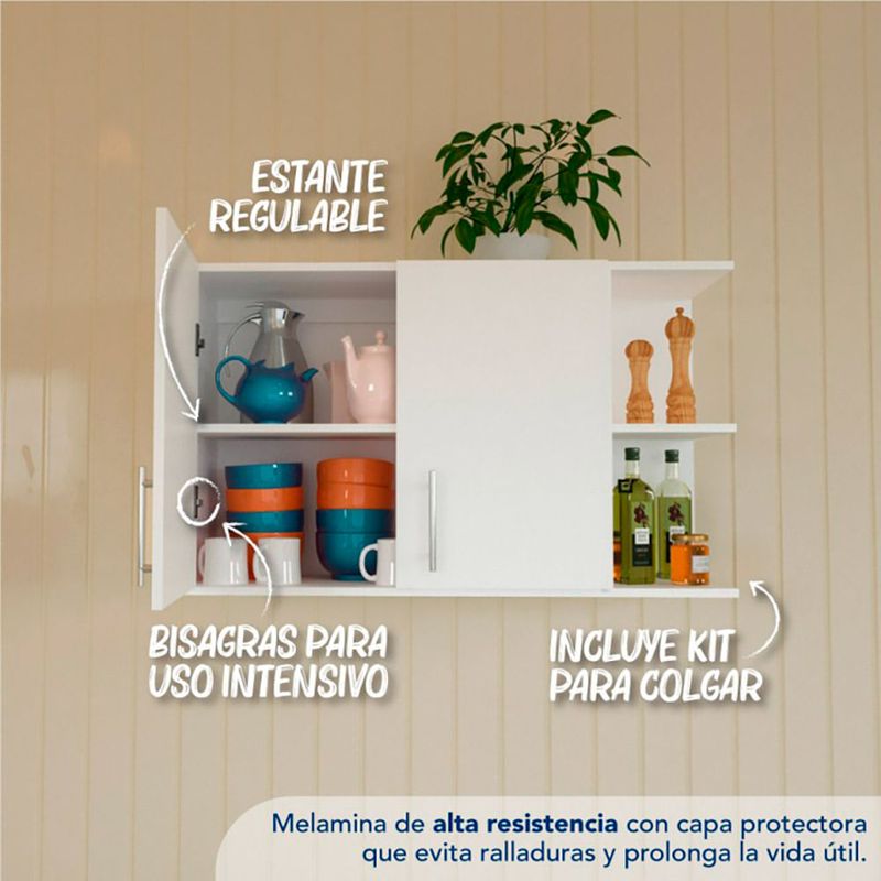 La alacena funcional G4BL de Centro Estant está hecha a partir de placas de aglomerado melaminizado, brindando gran protección contra el deterioro, evitando rayaduras, abrasión y prolongando su vida útil. Cuenta con 2 puertas y un estante lateral visible, con espacio para colocar todo lo que necesites a tu alcance. Así, lograrás armar la cocina que siempre quisiste, con un mueble tan funcional como moderno.Caracteristicas