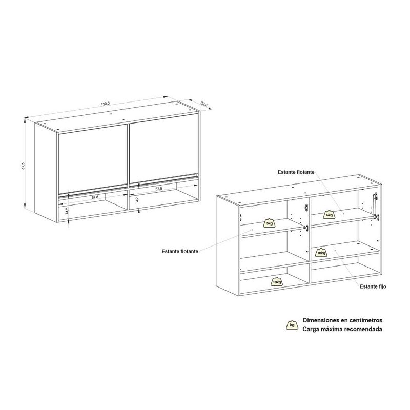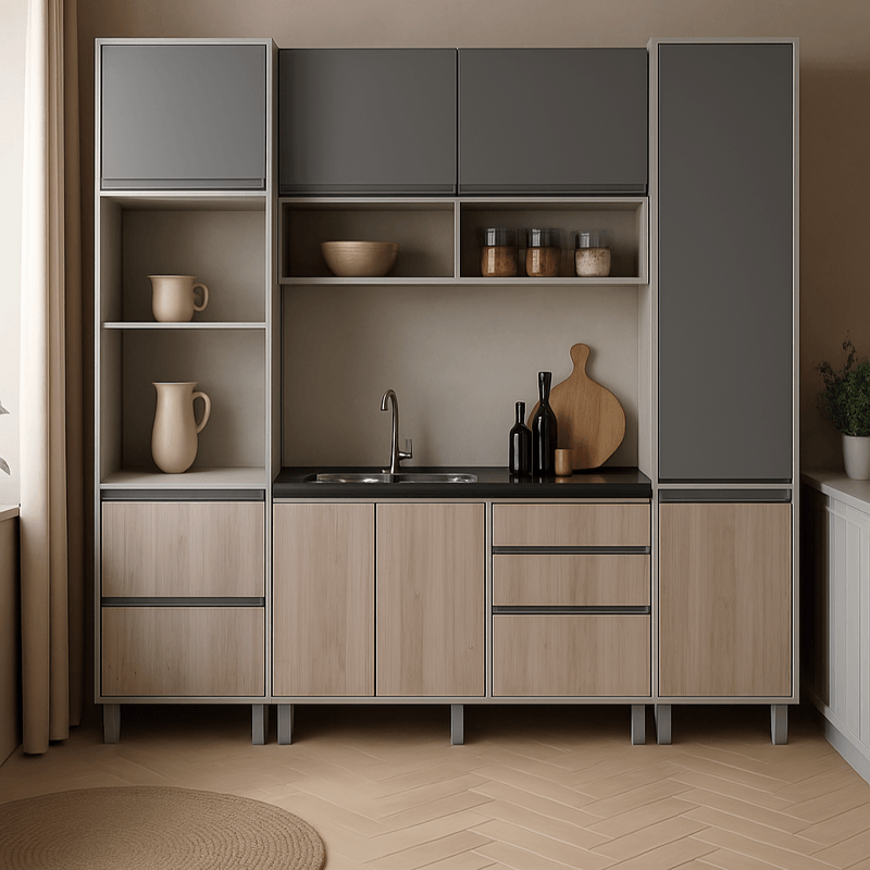 Alacena Sorrento 120 cm en gris-cascina con sistema doble agarre y melamina de 15 mm. Elegí funcionalidad y estilo para tu cocina.