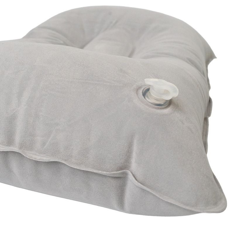 Ofrece una textura suave y agradable al tacto, brindando mayor confort al apoyar la cabeza. Se infla manualmente en segundos y se pliega fácilmente ocupando un espacio mínimo.