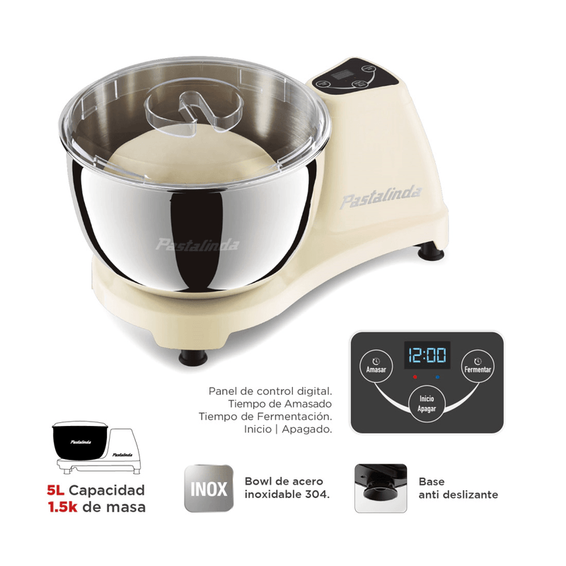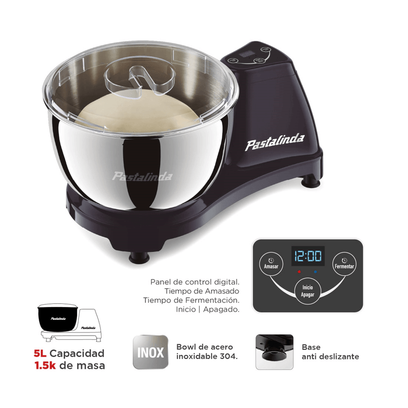 Capacidad de 5 litros con bowl de acero inoxidable