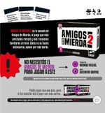 Amigos de Mierda 2 es un juego independiente que también podés usar como expansión de Amigos de Mierda. En Amigos de Mierda va a ganar el peor de ustedes ¡Pero lo van a señalar los demás! En cada ronda las cartas te van a preguntar, por ejemplo: En un apocalipsis zombie ¿cual de tus amigos sería el primero en morir? y a la cuenta de 3 todos deben señalar a alguien, el que sea elegido por la mayoría 5 veces ¡gana el juego!