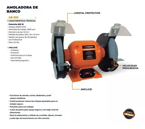 - Tipo de amoladora: De banco