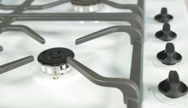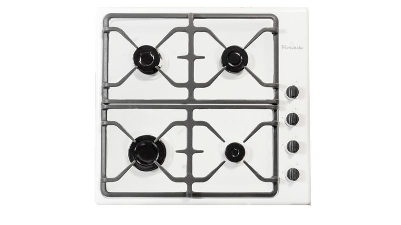 Anafe a gas blanco de cuatro hornallas con enlozado de alta resistencia y fácil limpieza con rejillas de fundición.