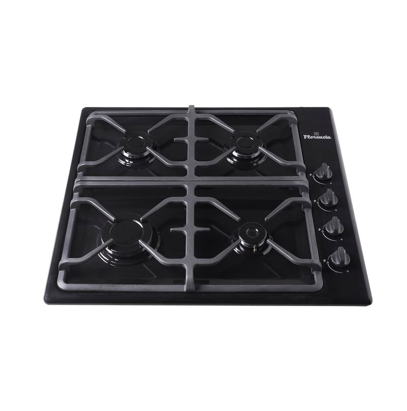 Anafe a gas negro de cuatro hornallas con enlozado de alta resistencia y fácil limpieza con rejillas de fundición.