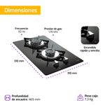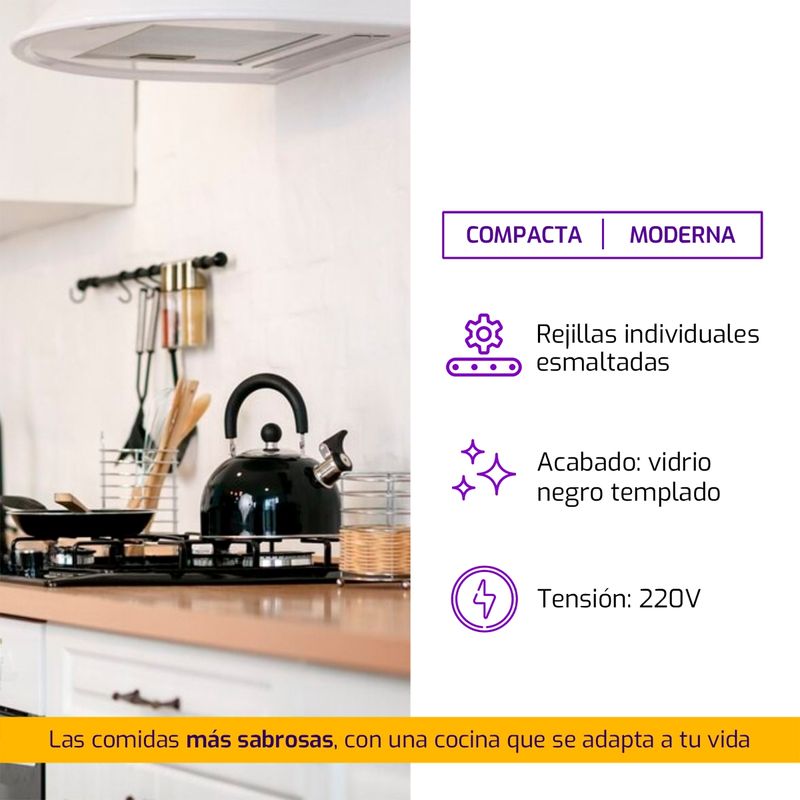 Puntos de cocción: 2 quemadores de alta eficiencia.