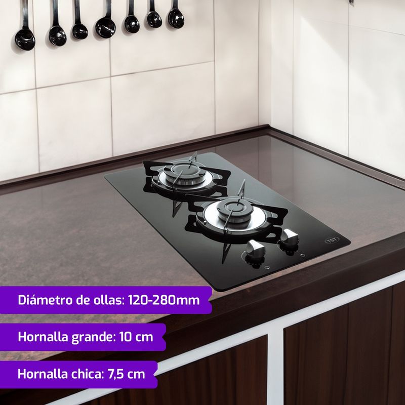 Anafe A Gas Tst Spezia 2 Hornallas Empotrable Vidriado Negro