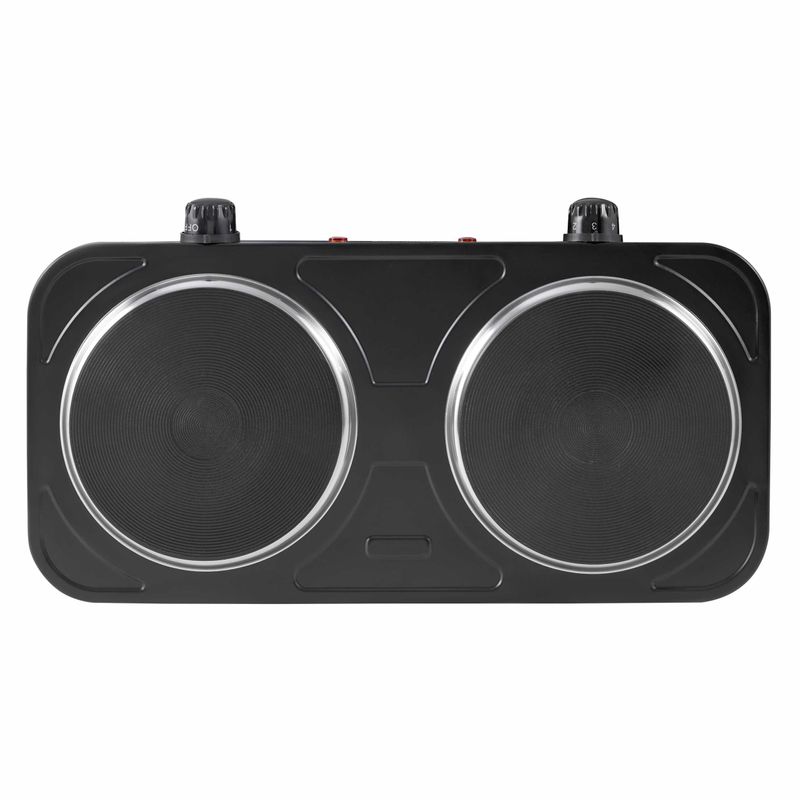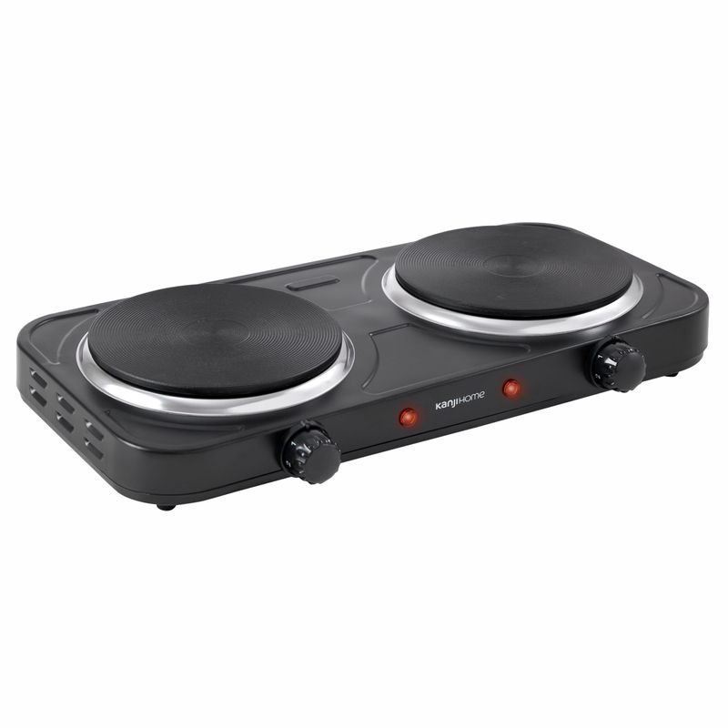 El anafe eléctrico doble Kanji Home Kjh-hp2200bdd es un modelo portátil y de sobremesa con una potencia de 2200 W, diseñado para cocciones rápidas y eficientes. Su diseño en color negro es ideal para espacios reducidos, como cocinas pequeñas, oficinas, departamentos o quinchos.