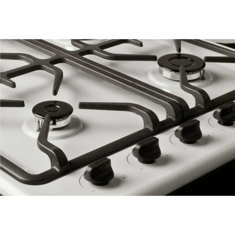 Anafe a gas blanco de cuatro hornallas con enlozado Durpox de alta resistencia y fácil limpieza.
