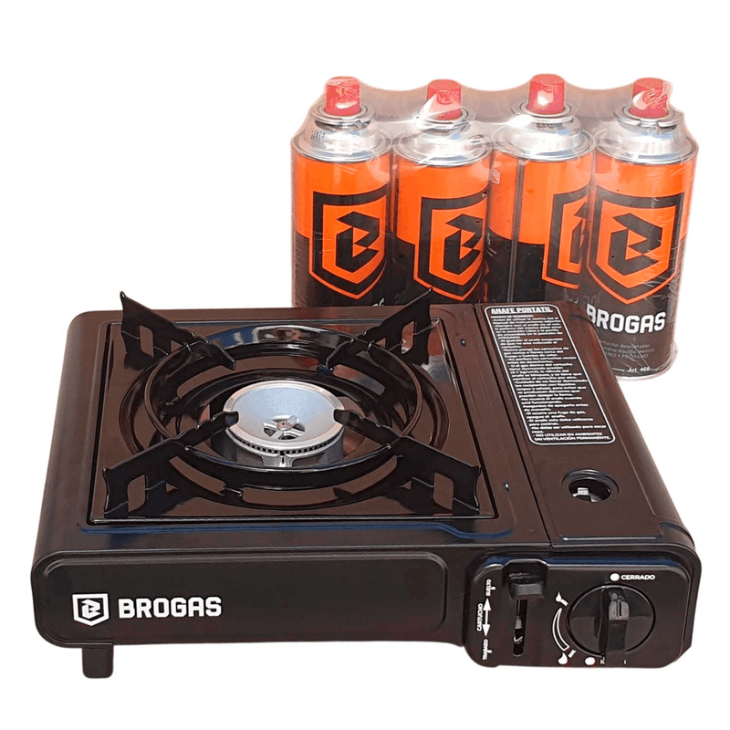 Anafe para Camping a Gas Brogas 465 + Maletin + 4 Cartuchos