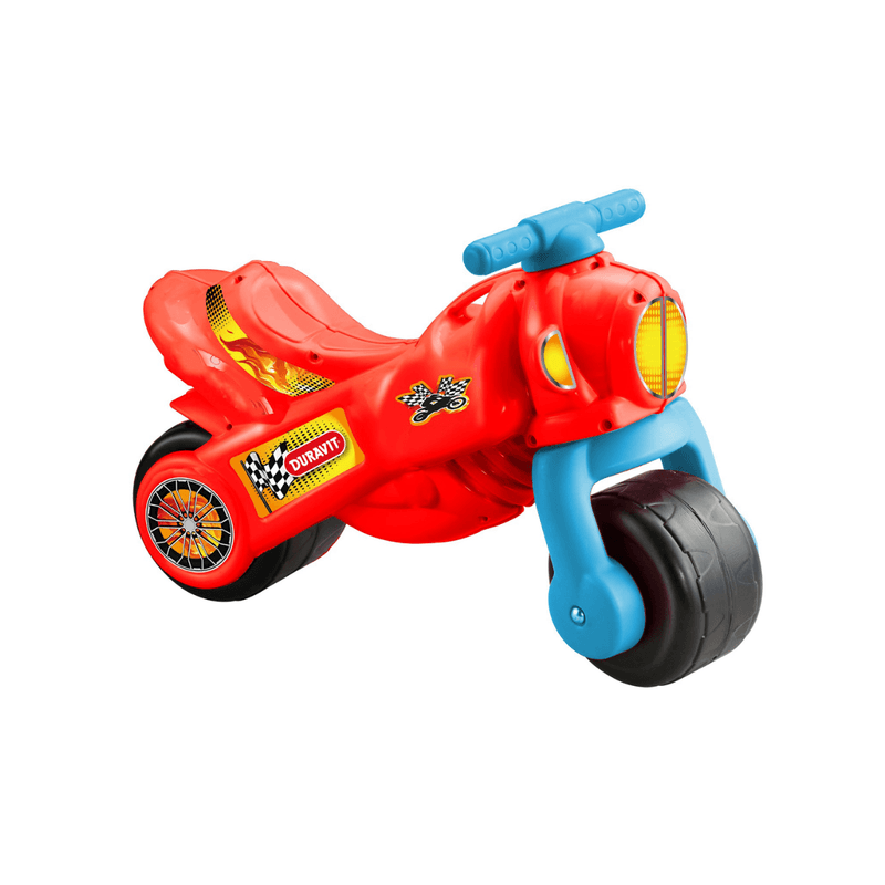 Con un diseño robusto y llamativo, en color rojo, esta moto de juguete acompaña el crecimiento y desarrollo motriz de los niños de forma divertida.