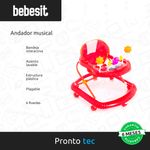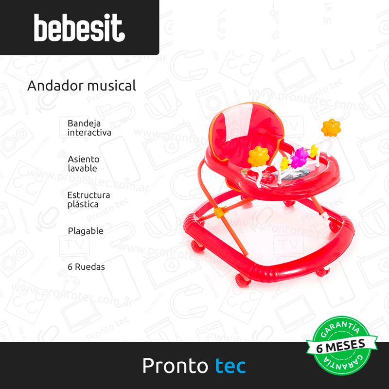 El andador musical Bebesit es ajustable y cuenta con una bandeja interactiva con luces, música y juegos didácticos, perfectos para los bebés.