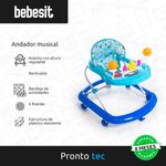 El andador musical Bebesit es ajustable y cuenta con una bandeja interactiva con luces, música y juegos didácticos, perfectos para los bebés.