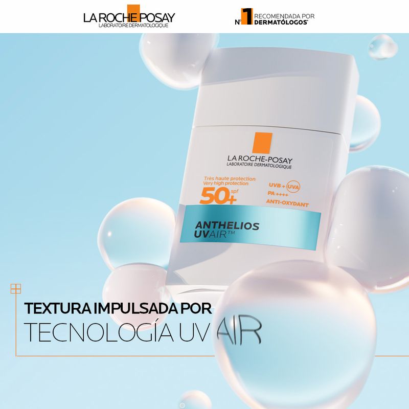 Protegé tu piel con estilo y eficacia. El nuevo Anthelios UV Air SPF 50+ 40 ml de La Roche-Posay combina alta protección solar con una textura ligera, fresca y matificante, enriquecida con niacinamida y ácido hialurónico. Ideal para todo tipo de piel y perfecto para llevar bajo maquillaje sin brillos. Una protección diaria que hidrata, evita manchas y cuida tu piel como un serum.