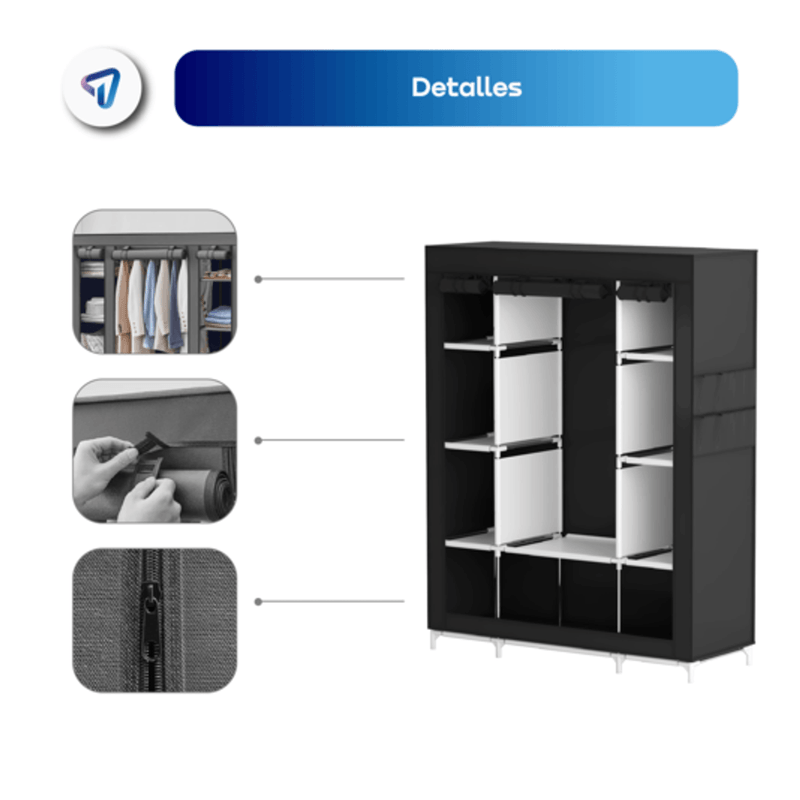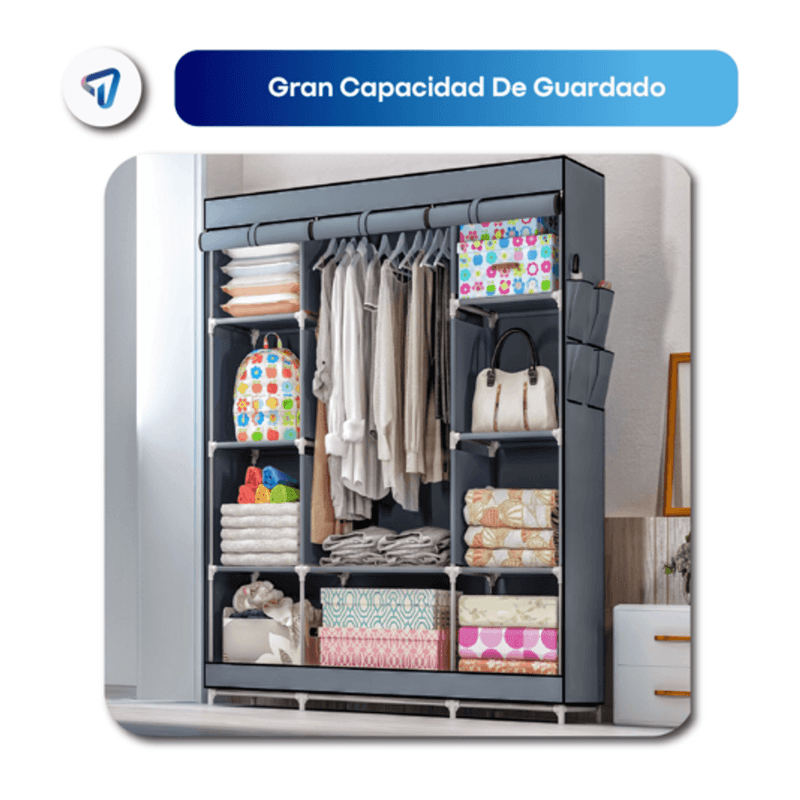 Organizador portátil WAGGS, práctico y versátil para mantener tu ropa siempre en orden. Su diseño modular con perchero y estantes amplios permite colgar y guardar prendas sin ocupar demasiado espacio, ideal para el hogar, oficinas o mudanzas. Fabricado con tubos metálicos galvanizados y funda de tela no tejida transpirable, protege la ropa del polvo y la humedad. Liviano, desmontable y fácil de armar sin herramientas, ofrece gran capacidad de guardado con un estilo sobrio y minimalista.