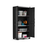 Robusto, de gran calidad y con alta capacidad, incorpora 3 baldas ajustables en altura capaces de soportar hasta 45 kilogramos de peso cada una. Sus puertas están montadas sobre bisagras metálicas de calidad, así como los tiradores, que se presentan con la posibilidad de incorporar un cierre de seguridad. Las patas son regulables en altura favoreciendo la estabilidad del armario y su adaptabilidad al espacio en el que disponer el almacenamiento.
