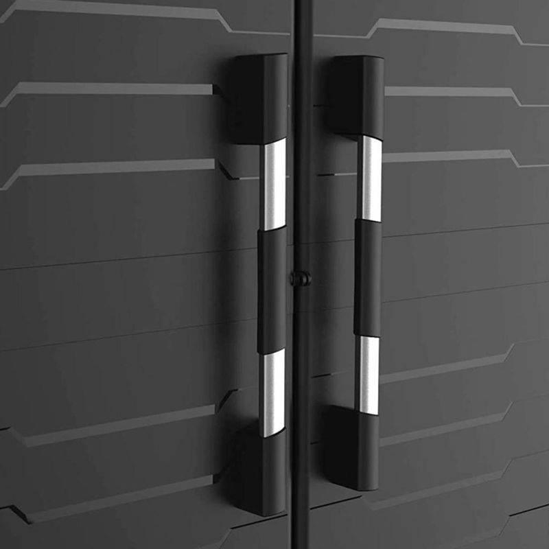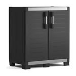 Mueble grande con un estante regulable en altura. Fabricado en resina de alta durabilidad y resiliencia. Puertas con bisagras metálicas. Pies ajustables en altura, incluido un quinto pie adicional en la base para mayor estabilidad. Certificado TUV para seguridad y calidad.
