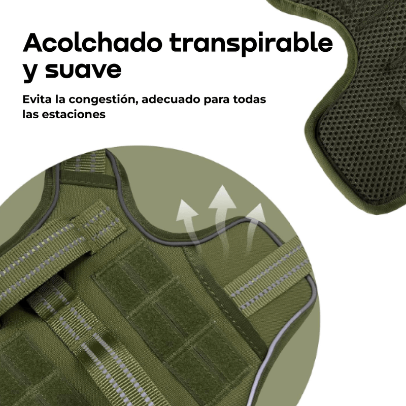 El arnés táctico para perro WAGGS está diseñado para brindar máximo control, comodidad y seguridad en paseos y entrenamientos diarios, adaptándose a perros pequeños, medianos y grandes. Su estructura reforzada con tejido acolchado y malla respirable protege la piel y asegura confort incluso en usos intensivos, mientras que el sistema antitirones con clip frontal y trasero permite un manejo firme y equilibrado. Incorpora hebilla lateral de cierre rápido tipo nesting para colocarlo en segundos, D-rings metálicos de alta resistencia y asa superior para control manual inmediato. El diseño reflectivo mejora la visibilidad nocturna y suma seguridad en entornos urbanos o con poca luz. Ajustable, resistente y funcional, es la opción ideal para quienes buscan durabilidad, control y estilo en un solo arnés. WAGGS acompaña cada salida con rendimiento y diseño pensado para tu perro.